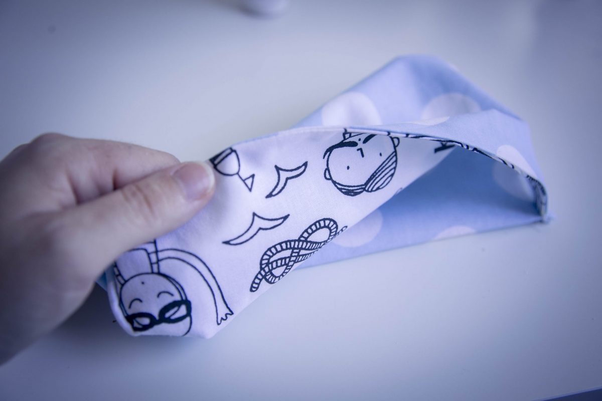 Passez un petit coup de fer à repasser pour aplatir vos coutures. Et pliez votre trousse de manière à à ce que les deux cordons se trouvent face à face.