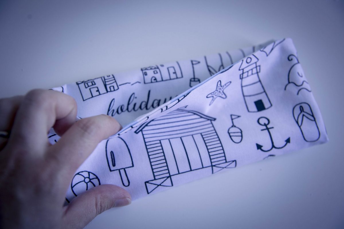Voici le résultat obtenu : vous avez désormais un rectangle avec sur l’avant votre tissus à motif et sur l’arrière votre tissu intérieur. Passez un petit coup de fer à repasser pour écraser vos coutures.
