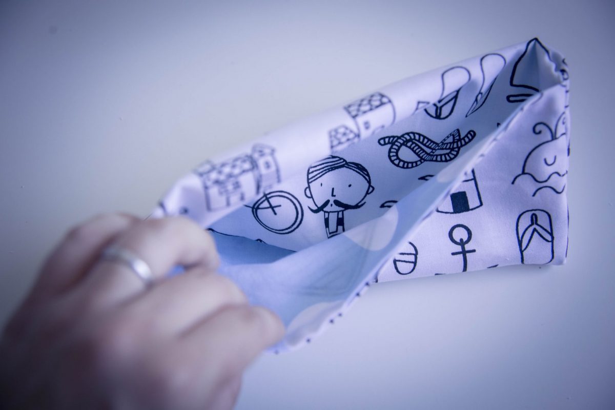 (C’est le cas de la trousse Ananas sur la photo précedente, vous pouvez aussi utiliser un tissu de type wax ou à motif japonais… laissez parler votre imagination !).